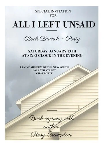 Book info Rosanny Crumpton 7/6/19 Book info Rosanny Crumpton 7/6/19 Book Signing in Charleston, South Carolina Read More Book info Rosanny Crumpton 10/17/18 Book info Rosanny Crumpton 10/17/18 Win a $25 Barnes & Noble Gift Card for our Blog's 3rd Birthday (Winner will be announced on 10/18/18)! Read More Book info Rosanny Crumpton 10/10/18 Book info Rosanny Crumpton 10/10/18 Want to win a $20 Amazon Giftcard? Week 2 of Giveaways is Here! Read More Book info, Lessons Rosanny Crumpton 7/31/18 Book info, Lessons Rosanny Crumpton 7/31/18 Happy August & 4 Things I learned While Book Touring Read More Book info Rosanny Crumpton 6/30/18 Book info Rosanny Crumpton 6/30/18 All I Left Unsaid Official Book Trailer Release Read More Book info, Goals Rosanny Crumpton 6/23/18 Book info, Goals Rosanny Crumpton 6/23/18 Happy Summer & Announcing July *Book Tour* Stops Read More Book info Rosanny Crumpton 4/7/18 Book info Rosanny Crumpton 4/7/18 **Save The Date- April 26th** Read More Book info, Goals Rosanny Crumpton 3/9/18 Book info, Goals Rosanny Crumpton 3/9/18 Can I Be Honest With You?? Read More Book info Rosanny Crumpton 2/4/18 Book info Rosanny Crumpton 2/4/18 Park Road Books Author Event Read More Book info, Goals Rosanny Crumpton 1/27/18 Book info, Goals Rosanny Crumpton 1/27/18 Launch Party ✔️, Now what?? Read More Book info Rosanny Crumpton 12/26/17 Book info Rosanny Crumpton 12/26/17 RSVP to Book Launch Party on January 13th!? Read More Book info Rosanny Crumpton 12/12/17 Book info Rosanny Crumpton 12/12/17 Announcing Book Pre-Order Details and Cover Reveal! Read More